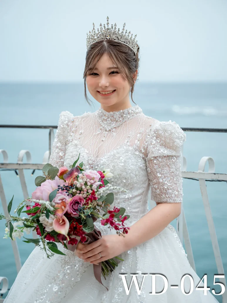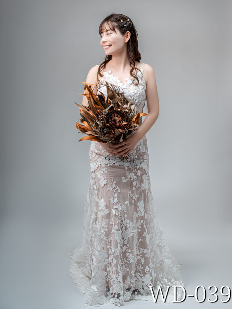 多種多様なアーティシャルフラワーブーケをラインナップ、ワンポイントのヘッドドレス、アクセサリーなども無料で貸し出しをしています。